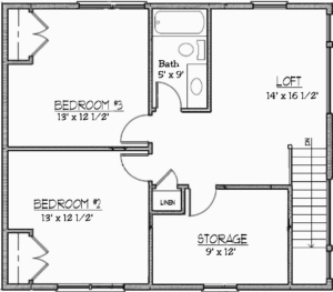 34 1/2′ wide by 74′ deep plan